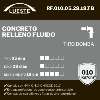 Concreto RF (Relleno Fluido), FC = 050, TMA = 05, Edad = 28, Rev = 18, Tiro = Bombeo